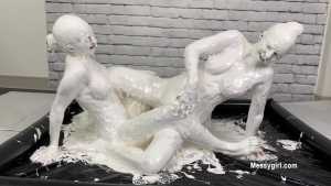 Sabrina, formerly Dakota's babysitter, officially welcomes her old friend as a Messy Girl. Mr. MG lent a hand. The two ladies got super sloppy, and slathered the mess on each other, and themselves.