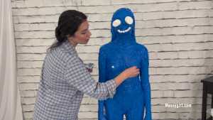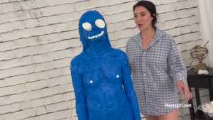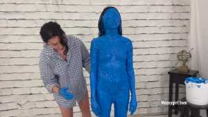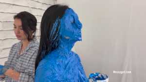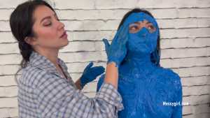 Celeste needs money for college, so she accepts being a life cast model, but little does she know she will soon be turned into a creepy looking human statue to be put on display. She thinks all is well as Penelope starts to slather her, but starts to panic when she can't move. Celeste is soon totally covered head to toe and unrecognizable. Penelope then adds the finishing touches by giving her huge bug eyes, a smile, nipples and a bush. Another human statue for Penelope to add to her collection.